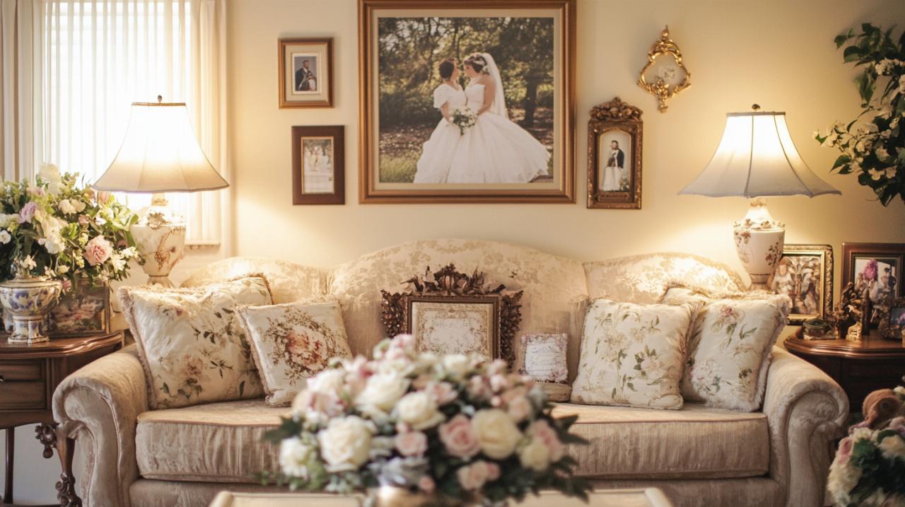 Les cadres décoratifs jouent un rôle crucial dans la mise en valeur de ces moments intimes. Optez pour des encadrements qui s'harmonisent avec le style de chaque pièce tout en créant une continuité visuelle dans l'ensemble de votre intérieur. Un cadre en bois naturel rappellera l'ambiance champêtre de votre cérémonie si celle-ci s'est déroulée en extérieur, tandis qu'un cadre doré ou argenté apportera une touche d'élégance dans un salon plus classique. Pensez également aux formats originaux comme les triptyques qui permettent de raconter une séquence en trois temps, ou les pêle-mêle qui rassemblent plusieurs petites photos dans un seul cadre.