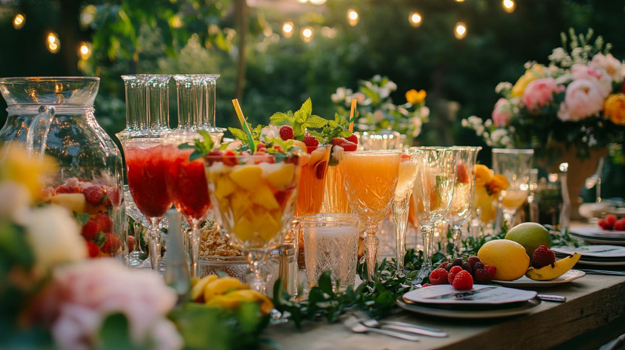 L’avantage des jus frais réside dans leur polyvalence : ils peuvent être servis seuls, mélangés entre eux ou utilisés comme base pour des mocktails plus élaborés. Un simple jus d’orange fraîchement pressé, servi dans un verre givré au petit-déjeuner du lendemain, ravit autant qu’un mélange sophistiqué de betterave, pomme et gingembre proposé lors du cocktail de bienvenue. La transparence de cette option rassure également les invités soucieux de leur consommation, car ils savent exactement ce qu’ils boivent. Pour un mariage en été, les jus frais apportent une fraîcheur bienvenue qui aide à combattre la chaleur tout en offrant une alternative naturelle et vitaminée aux sodas trop sucrés.