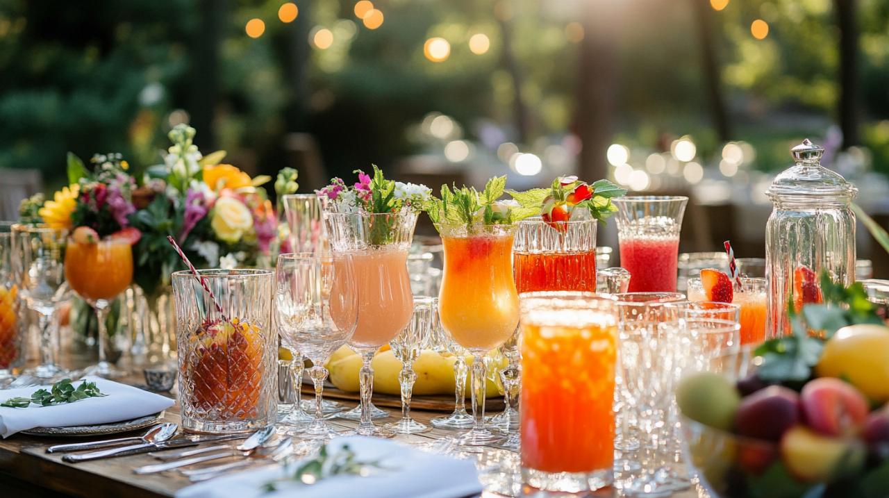 L’avantage des jus frais réside dans leur polyvalence : ils peuvent être servis seuls, mélangés entre eux ou utilisés comme base pour des mocktails plus élaborés. Un simple jus d’orange fraîchement pressé, servi dans un verre givré au petit-déjeuner du lendemain, ravit autant qu’un mélange sophistiqué de betterave, pomme et gingembre proposé lors du cocktail de bienvenue. La transparence de cette option rassure également les invités soucieux de leur consommation, car ils savent exactement ce qu’ils boivent. Pour un mariage en été, les jus frais apportent une fraîcheur bienvenue qui aide à combattre la chaleur tout en offrant une alternative naturelle et vitaminée aux sodas trop sucrés.